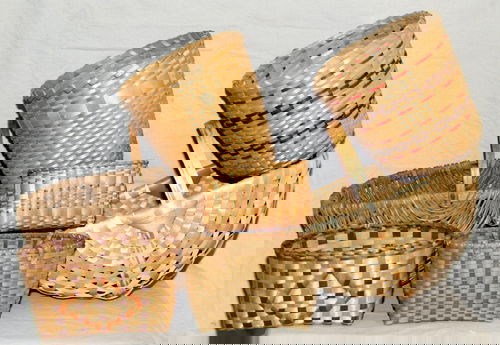 Vintage Lot of 9 Peterboro/Longaberger Handwoven BasketsLot of 2 antique baskets incl 1 potato stamp - probably both Native American - 5 1/2" tall x 124 days LeftLot of 2 antique miniature fixed handled baskets - 2 3/4" tall x 3 1/2"x2 3/4" & 2" tall x 2 1/2" x11 day LeftLOT OF (2) PAINTED COUNTRY BASKETSApr 17, 2026Traditional Kenyan Hand Woven Basket & Bowl SetApr 09, 20264 Ho-Chunk Splint Woven Black Ash BasketsApr 14, 2026Three Country Split Oak Gathering BasketsThree large country woven baskets including: Covered woven splint basket with carved wooden overheadMar 29, 2026Country BasketsMar 28, 2026Four Country Buttocks Baskets(3) ANTIQUE GATHERING BASKETS, UNUSUAL FORMSApr 17, 2026A group of Northwest Coast basketsApr 07, 2026Four Good Country BasketsMar 28, 2026Native American Large Lidded BasketApr 18, 2026Shaker-style Wood Basket, Rectangular Basket and Gathering BasketMar 30, 2026(3) 19TH C. PA RYE STRAW BASKETSApr 17, 2026