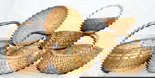 Vintage Lot of 9 Peterboro/Longaberger Handwoven BasketsLot of 2 antique baskets incl 1 potato stamp - probably both Native American - 5 1/2" tall x 123 days LeftLot of 2 antique miniature fixed handled baskets - 2 3/4" tall x 3 1/2"x2 3/4" & 2" tall x 2 1/2" x11 day LeftLOT OF (2) PAINTED COUNTRY BASKETSApr 17, 2026Traditional Kenyan Hand Woven Basket & Bowl SetApr 09, 20264 Ho-Chunk Splint Woven Black Ash BasketsApr 14, 2026Three large country woven baskets including: Covered woven splint basket with carved wooden overheadMar 29, 2026Country BasketsMar 28, 2026Three Country Split Oak Gathering BasketsFour Country Buttocks BasketsShaker-style Wood Basket, Rectangular Basket and Gathering BasketMar 30, 2026(3) ANTIQUE GATHERING BASKETS, UNUSUAL FORMSApr 17, 2026Four good splint woven baskets with double handles, all appear to be 19th century - the smallerMar 29, 2026Four Good Country BasketsMar 28, 2026(3) 19TH C. PA RYE STRAW BASKETSApr 17, 2026A group of Northwest Coast basketsApr 07, 2026