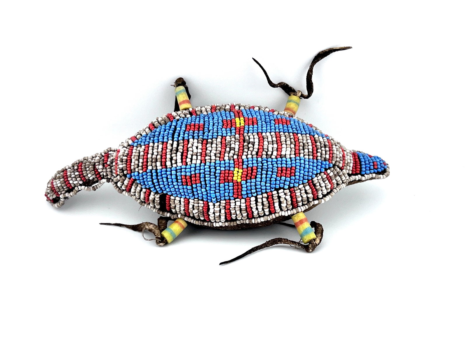5" Superb Antique Native American Indian Plains Beaded Umbilical Cord Fetish Amulet In The Form Of A5" Superb Antique Native American Indian Plains Beaded Umbilical Cord Fetish Amulet In The Form Of A Lizard, Umbilical amulets were common among the Lakota and other Plains tribes. Made to hold a baby