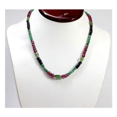 Natural 120.85 ctw Emerald Ruby Sapphire Bead Necklace
