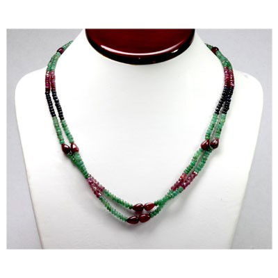 Natural 145.10 ctw Emerald, Ruby Sapphire Bead Necklace