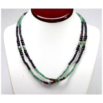Natural 192.02 ctw Emerald, Ruby Sapphire Bead Necklace
