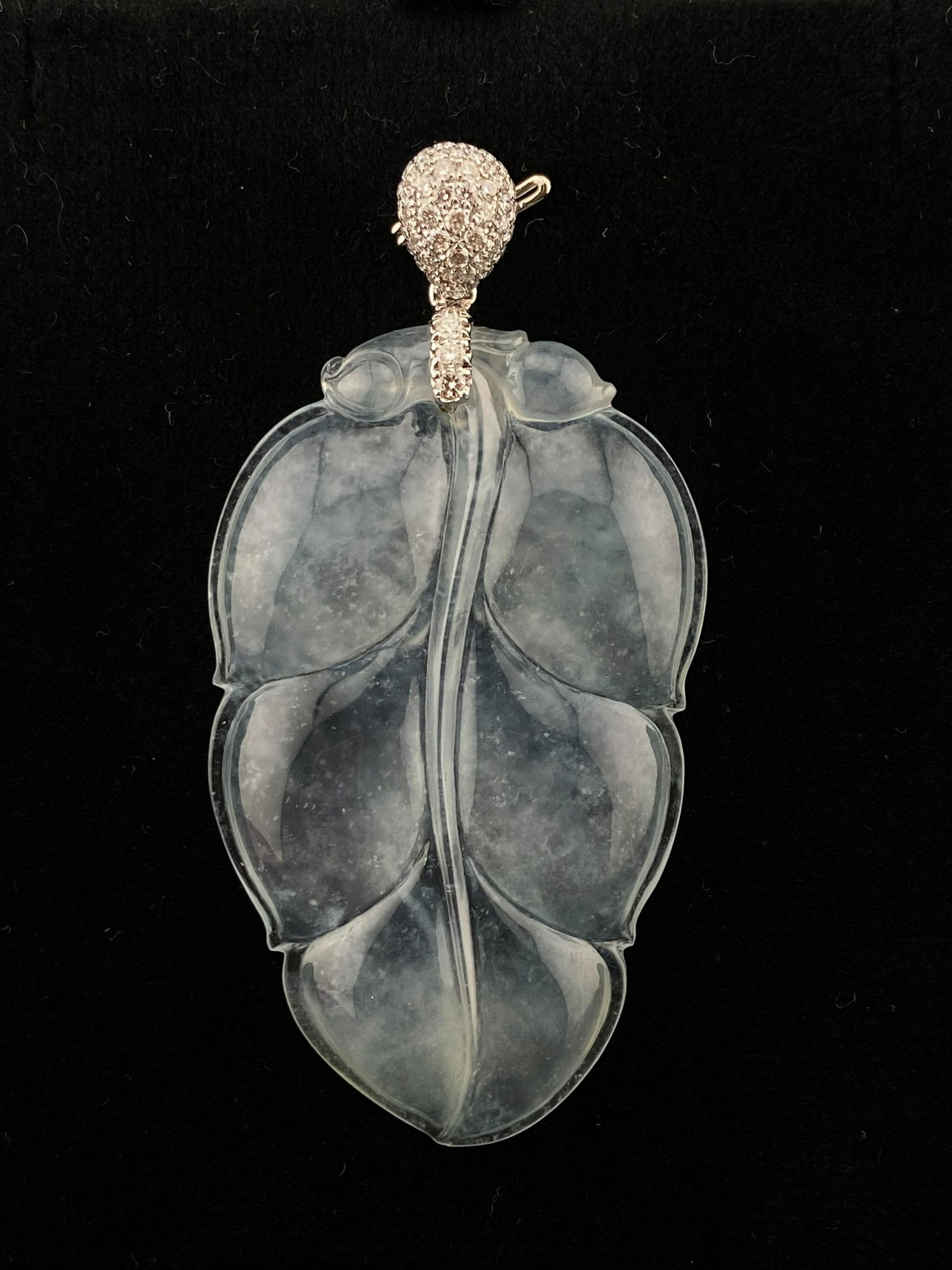 Grade A Green Icy Jadeite Jade Pendant Carved Leaf Pattern
