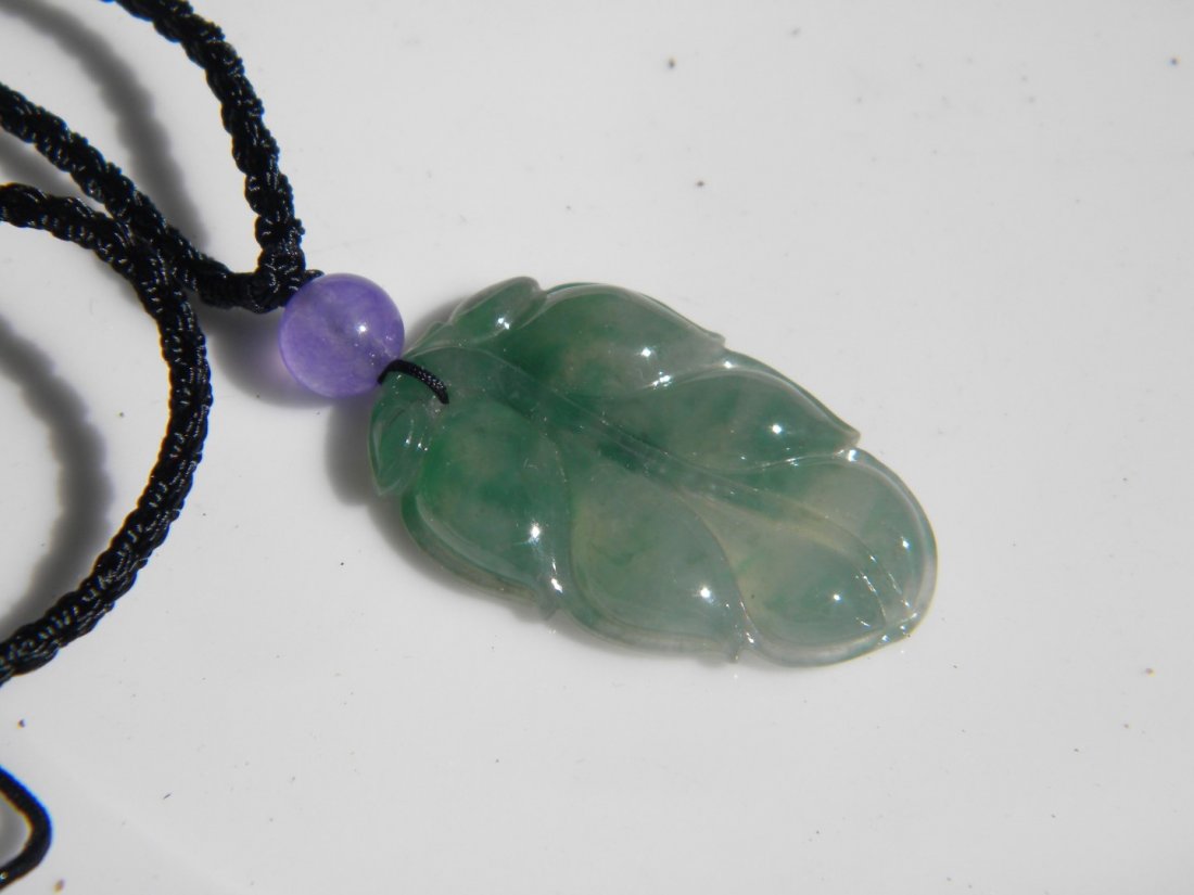 Grade A Green Icy Jadeite Jade Pendant Carved Leaf Pattern