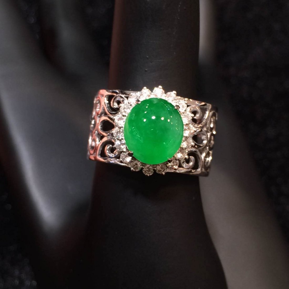 18K gold diamond-encrusted natural jadeite saddle ring