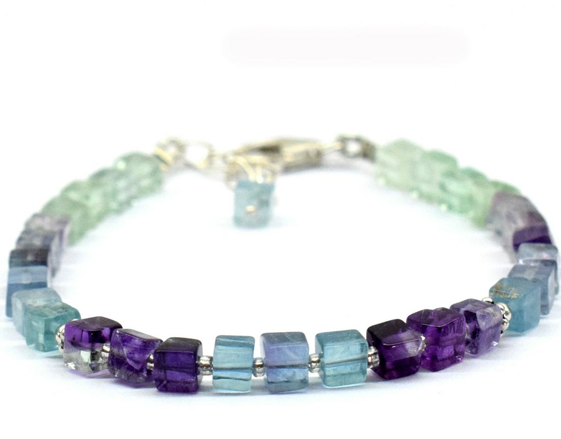 NATURAL MULTI FLUORITE BRACELET W/ 925 SILVER