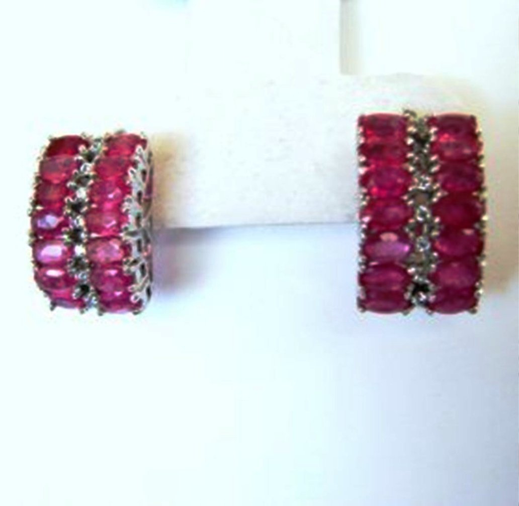Natural Ruby Creation Dia Ear 19.16ct 18k W/g Overlay