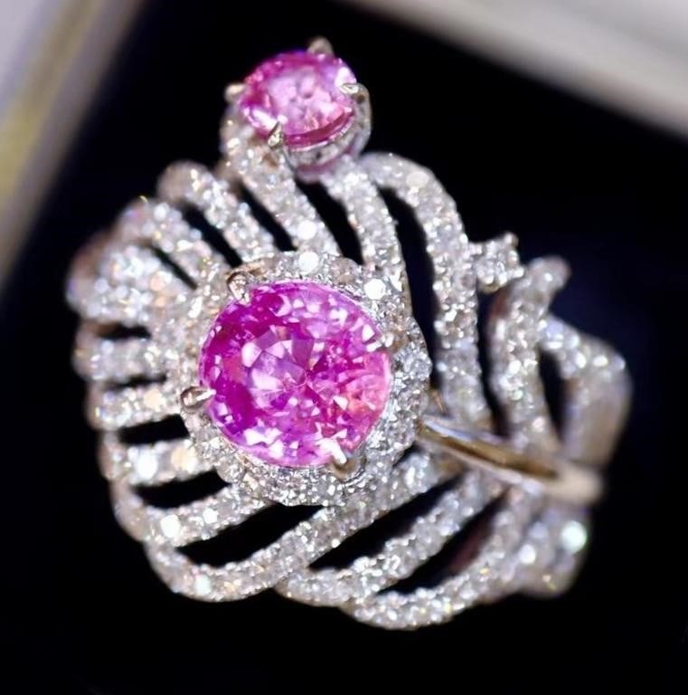 2.68ct natural vivid pink sapphire diamonds ring 18kt split shank mod+Chairish Auctions4.5(10.4k)$1,900