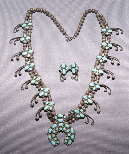 Native American Navajo Sterling Silver Golden Hill Turquoise Squash Blossom Necklace & Earring's SetAWS Auctioneers4.4(538)$750(6 bids)9 hrs Left