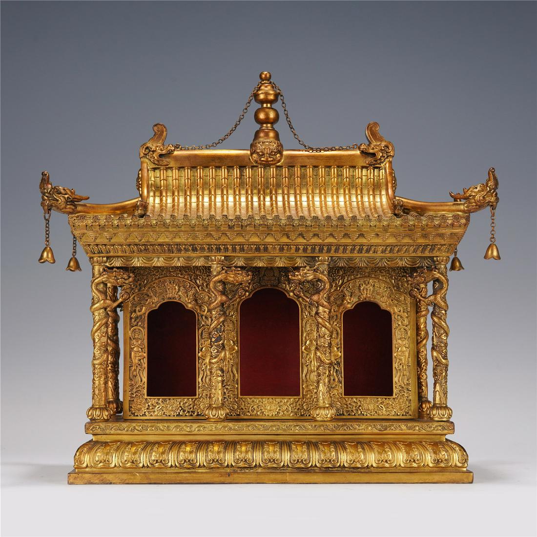 A CHINESE BRONZE GILT PALACE FORM BUDDHA NICHE