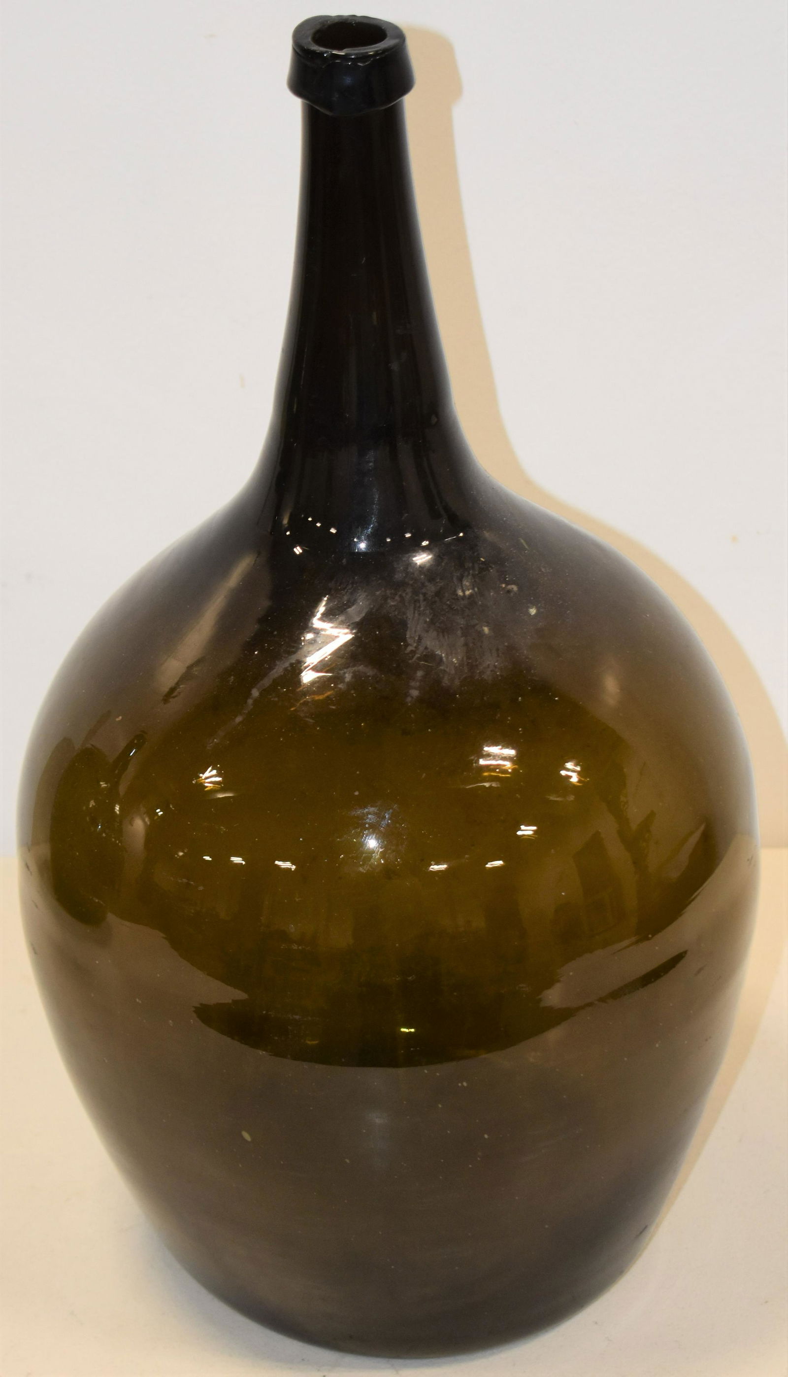 N.E. OLIVE GREEN BLOWN GLOBULAR BOTTLE