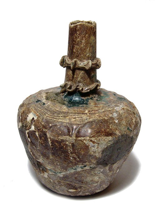 Near Eastern Pattern-Molded green glass flask