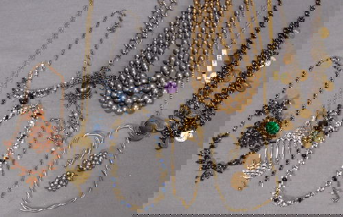 Sold16 NECKLACE LOT PEARL STONE WOOD GLASS COLLECTIONVINTAGE ESTATE 16 PIECE COLLECTION OF ASSORTED NECKLACES WITH PEARLS, STONES, WOODS, GLASS AND COSTUME STONES AND BEADS. USA SHIPPING $5.See Sold Price