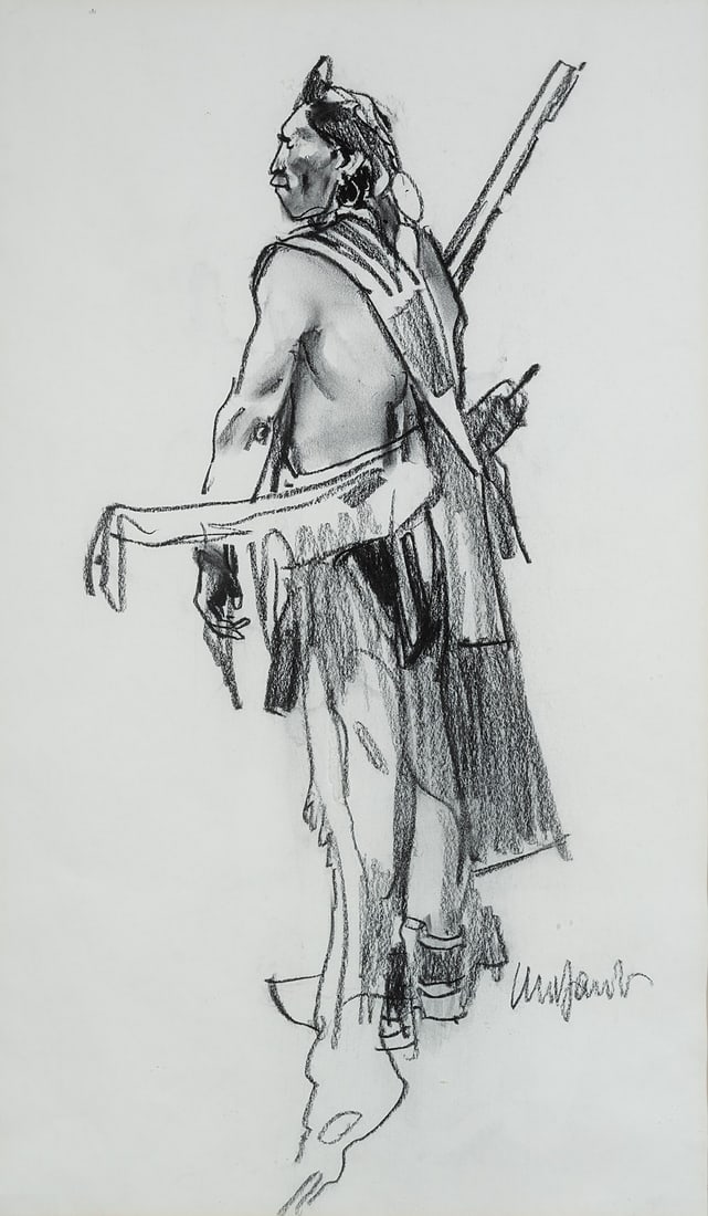 SoldNed Jacob, American, Colorado, Born 1938Ned Jacob, American, Colorado, Born 1938, Fancy Dancer, American Indian, 1975, Charcoal On Paper, Signed Lower Left, Signed, Titled And Dated Verso, Sight 24 X 18 In., Linen Mat Under Glass Painted WoSee Sold Price