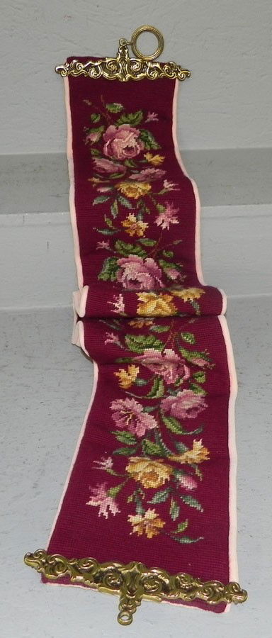 Needlepoint bell pull. Needlework by Mrs. Moore.