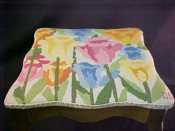 NEEDLEPOINT FOOTSTOOL BLOND NEWER