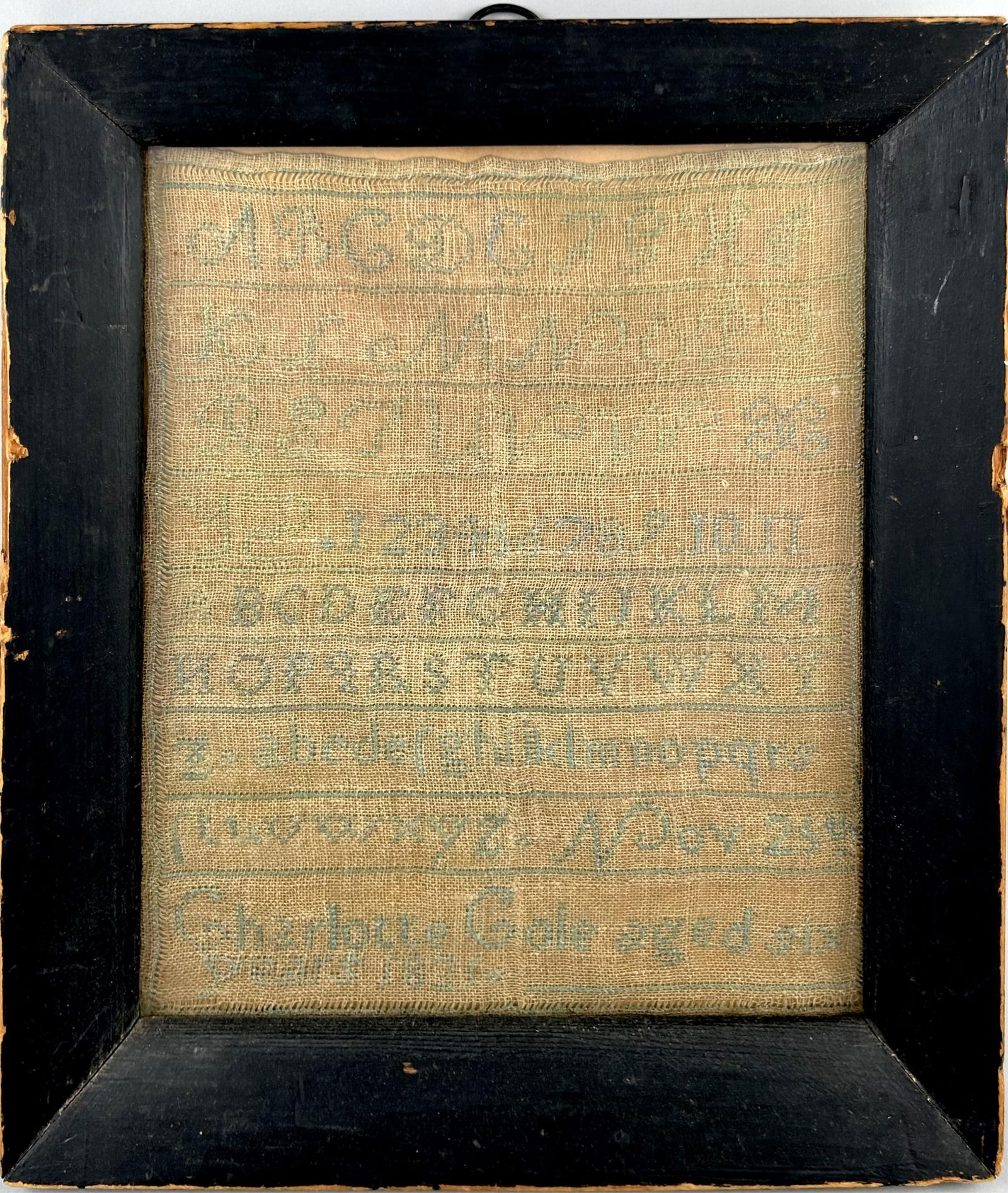 NEEDLEWORK SAMPLER Dated 1821 12" x 9.5" sight. Framed 15" x 12.75".