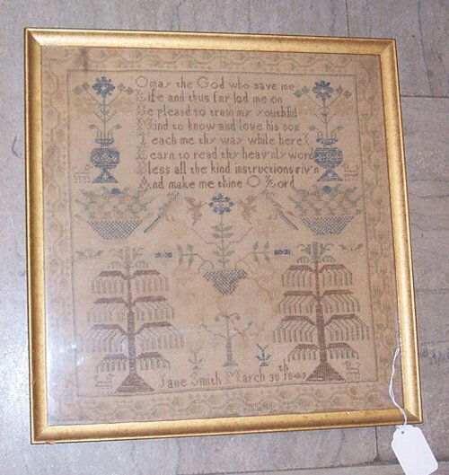 NEEDLEWORK SAMPLER Jane Smith March 30th 1849" A