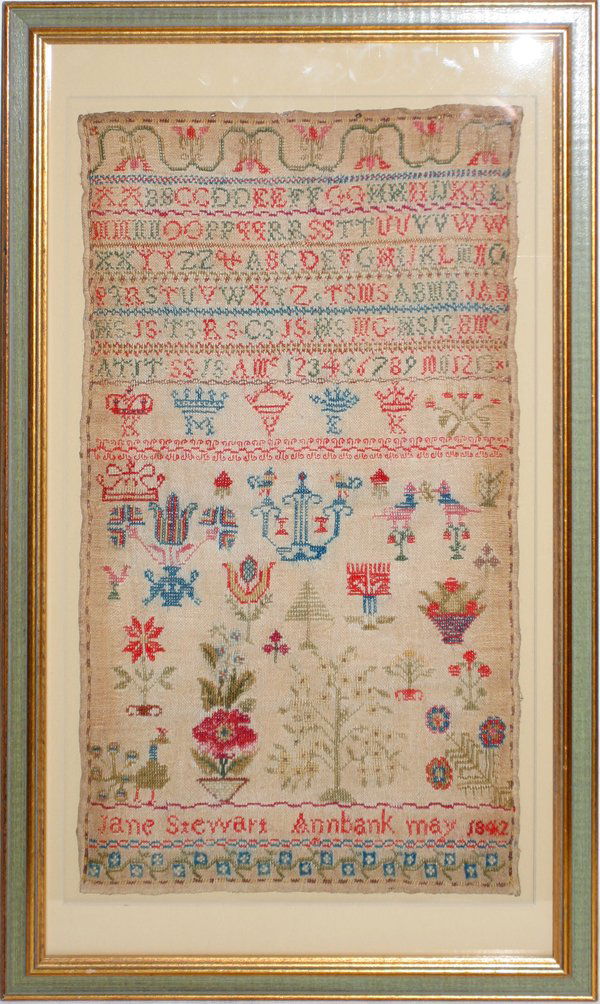 NEEDLEWORK SAMPLER, JANE STEWART ANNBANK, 1842