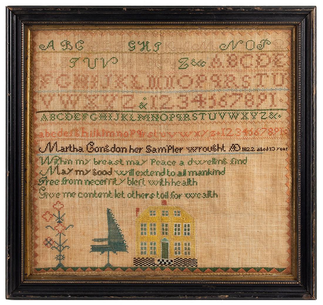 A Bucks County, Pennsylvania Pictorial Needlework Sampler, Margaret Jamison 17995 hrs LeftAMERICAN SCHOOL "ROLLING STONE FARM 1931" NEEDLEWORK TAPESTRY, DATED 1936.4 days LeftSchoolgirl Needlework Sampler, Dated 18113 hrs LeftFINE AND RARE SUSAN TILTON (DANVILLE, VERMONT, B. 1813) NEEDLEWORK SAMPLER, DATED 1827. Frame, 17"h.4 days LeftAMERICAN FOLKSY NEEDLEWORK FARMYARD SCENE.4 days Left19TH C. SCHOOLGIRL SAMPLER11 hrs LeftA Bucks County, Pennsylvania Needlework Sampler, Mary Roberts, 17985 hrs LeftNew Hampshire Ford Family Needlework Register,18233 hrs LeftSALLY OSGOOD (ANDOVER, MASSACHUSETTS) NEEDLEWORK SAMPLER, DATED 1808. Frame, 20.5"h. 19.5"w.4 days LeftAntique alphabet/numeric sampler w birds & flowers "Lydia Ann Wright" - overall framed size 26"x26Mar 22, 2026MERIBAH ELLIS (AMERICAN) FAMILY RECORD PETIT POINT SAMPLER.4 days LeftEarly 19thC sampler w Adam & Eve, birds, cat, lion, stag, tree, fruit, etc dated 1803 - overallMar 22, 2026MARGARET SWAIN (MASSACHUSETTS) NEEDLEWORK MOURNING MEMORIAL SAMPLER FOR THOMAS A. SWAIN, DATED 1810.4 days LeftAntique pictoral sampler w initials, verse, house, flowers, etc - overall framed size 25"x32"Mar 22, 2026THREE AMERICAN PATRIOTIC BERLIN SAMPLERS. Largest, 14"h. 26.5"w.4 days LeftSARAH SHAW (ENGLISH, B. 1837) ADAM AND EVE NEEDLEWORK SAMPLER, DATED 1848.4 days Left