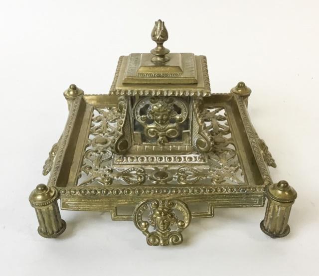 Vintage Art Nouveau Brass Inkwell