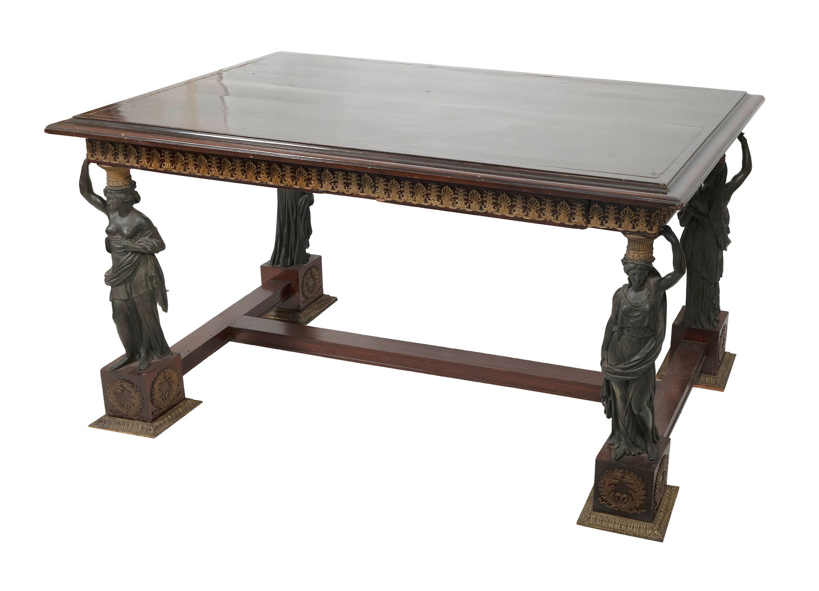 NEOCLASSICAL LIBRARY TABLE 19th Century Height 33". Width 59". Depth 35.5".