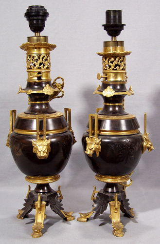 Pair of Ceramic Oriental Table Lamps, Decoration, Bronze, 19th C.Pair of French Gilt Bronze Urn Lamps with Putti Reliefs, circa 1900Pair of French Neoclassical Style Brass Andirons4 days LeftA PAIR OF GILT BRONZE BEAST-MASK COVERED VASES INLAID WITH TURQUOISE, WITH LOOSE RING HANDLES5 days LeftBrass AndironsA GILT BRONZE INCENSE BURNER WITH DRAGON-AND-PHOENIX MOTIF AND LION KNOBMar 05, 2026Pair Marbro Chinoiserie bronze Chinese archaic style vase table lamps with floral motif 35 1/2"H x12 hrs LeftPAIR OF BRONZE AND FAUX GREEN MARBLE URN FORM WOOD LAMPS12 hrs LeftPair of 19th Century Neoclassical Style Urn LampsPair of Neoclassical Style Brass UrnsMar 07, 2026French Empire Figural Bronze Urn and Flame Form Fireplace Chenets c1840Mar 07, 2026Handsome Pair Neoclassical Style Gilt & Faux Tortoise Table LampsFeb 28, 2026Pair of Brass Louis XVI Style Lamps, 20th c., H.- 22 in., Dia.- 6 in. (2 Pcs.)6 days LeftFrench Ormolu Mounted Rouge Griotte Urns, PairMar 19, 2026An antique polished brass lion decorated inkwell desk set with two matching candle holders3 days LeftVintage MidCentury 1960s Neoclassical Brass Plated Tall Table Lamps - A Pair