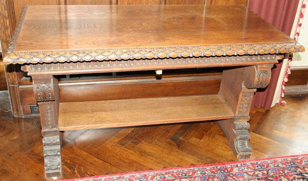 NEOCLASSICAL STYLE CARVED OAK PARLOR TABLE,