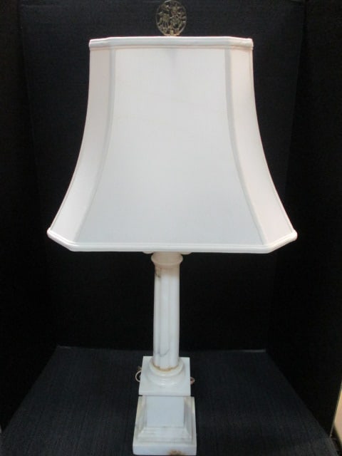 Neoclassical Style Marble Column Table Lamp with Silk Shade