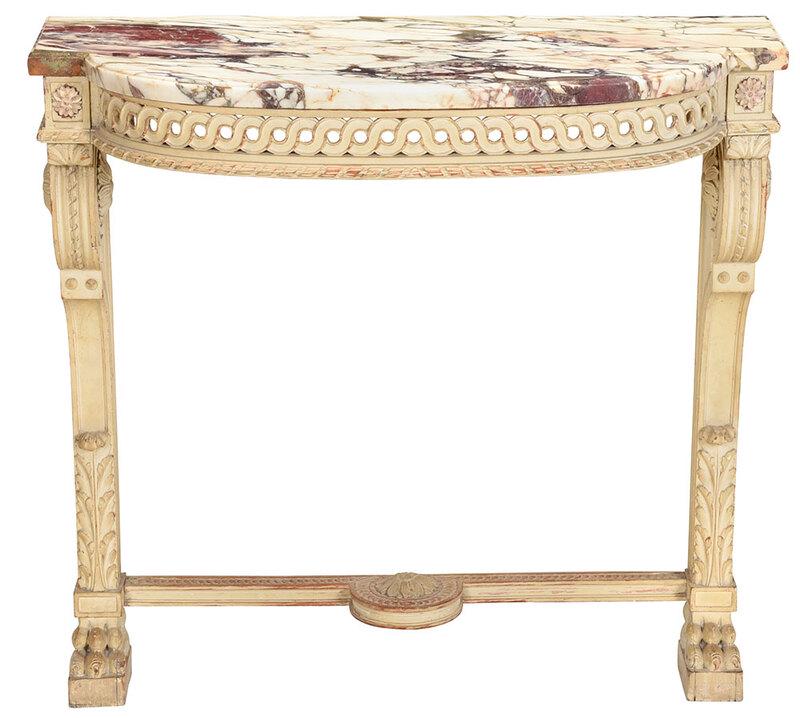 Antique Neoclassical Cast Iron Marble Top English Pub TableDemilune Console Or Serving Table French Maison Jansen Ribbon Form Marble topNeoclassical Style Marble-Top Bowed Table Mirrored Back Gilded Dolphin AccentsNeoclassical Style Marble-Top Bowed Table Mirrored Back Gilded Dolphin AccentsMaitland Smith Ornate Marble Top Console Table with Carved Feet6 days LeftGeorge III Style Painted Wood Console TableFeb 18, 2026French Neoclassical Marble Top Giltwood ConsoleMar 19, 2026Marble Top Rococo Style Mahogany Table With Carved Paw FeetItalian Marble Top Carved and Parcel Gilt TableFeb 19, 2026ENGLISH GEORGIAN PERIOD MARBLE-TOP GILTWOOD CONSOLE TABLEFeb 22, 202618th Century French Louis XIV Bleached Walnut Console Table with Breccia Marble Top4 days Left19th Century Louis XV Rococo Table with Breccia Marble Top2 days LeftMarble-top giltwood console table5 days LeftFINE FRENCH LOUIS XVI STYLE MARBLE TOP CENTER TABLEFeb 21, 2026LOUIS XVI STYLE MARBLE-TOP ORMOLU COFFEE TABLEFeb 21, 2026French Empire Marble Top Mahogany Pier Table, early to mid 19th c., H.- 36 1/2 in., W.- 45 1/2 in.,Feb 27, 2026