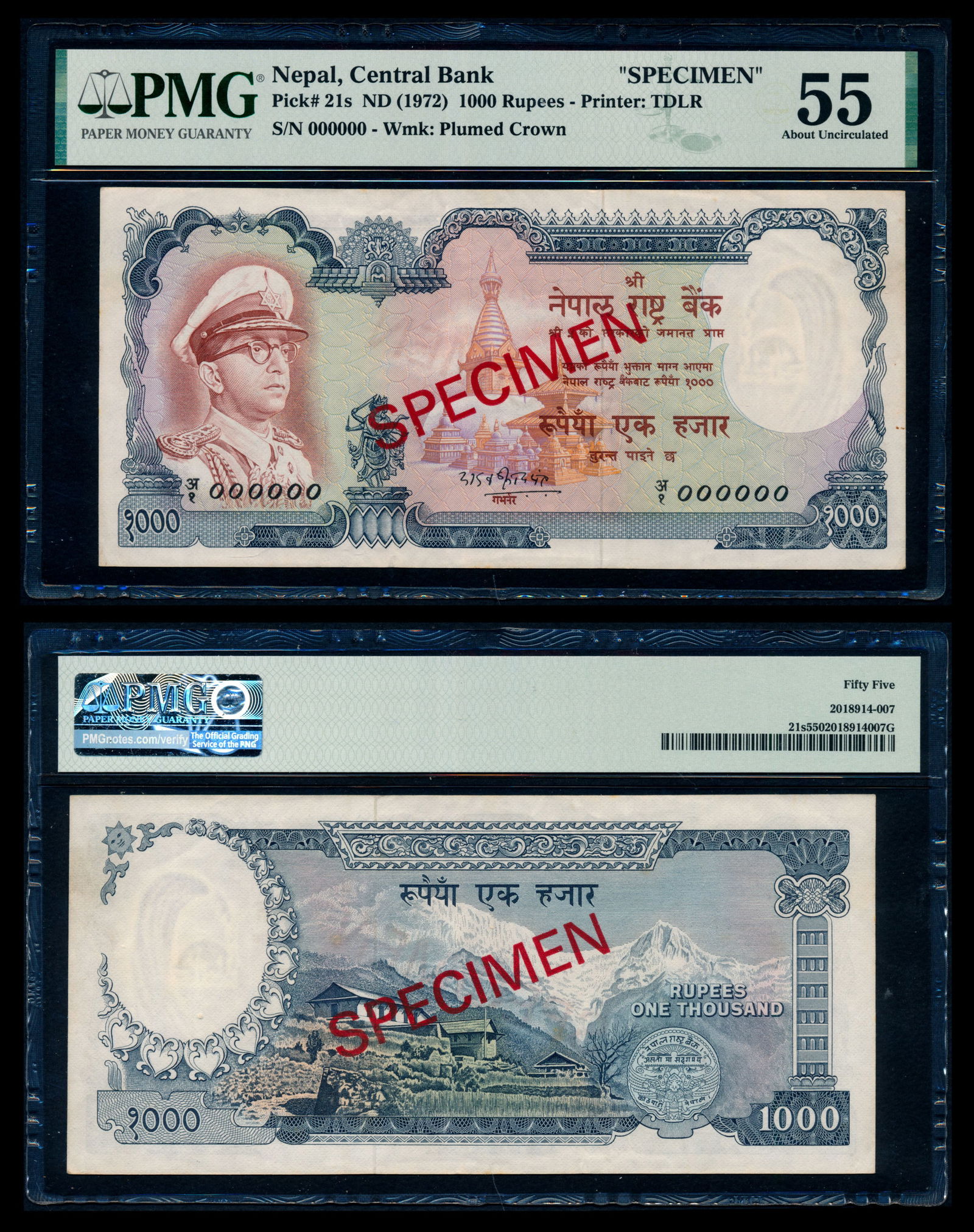 Nepal 1000 Rupees 1972 specimen PMG