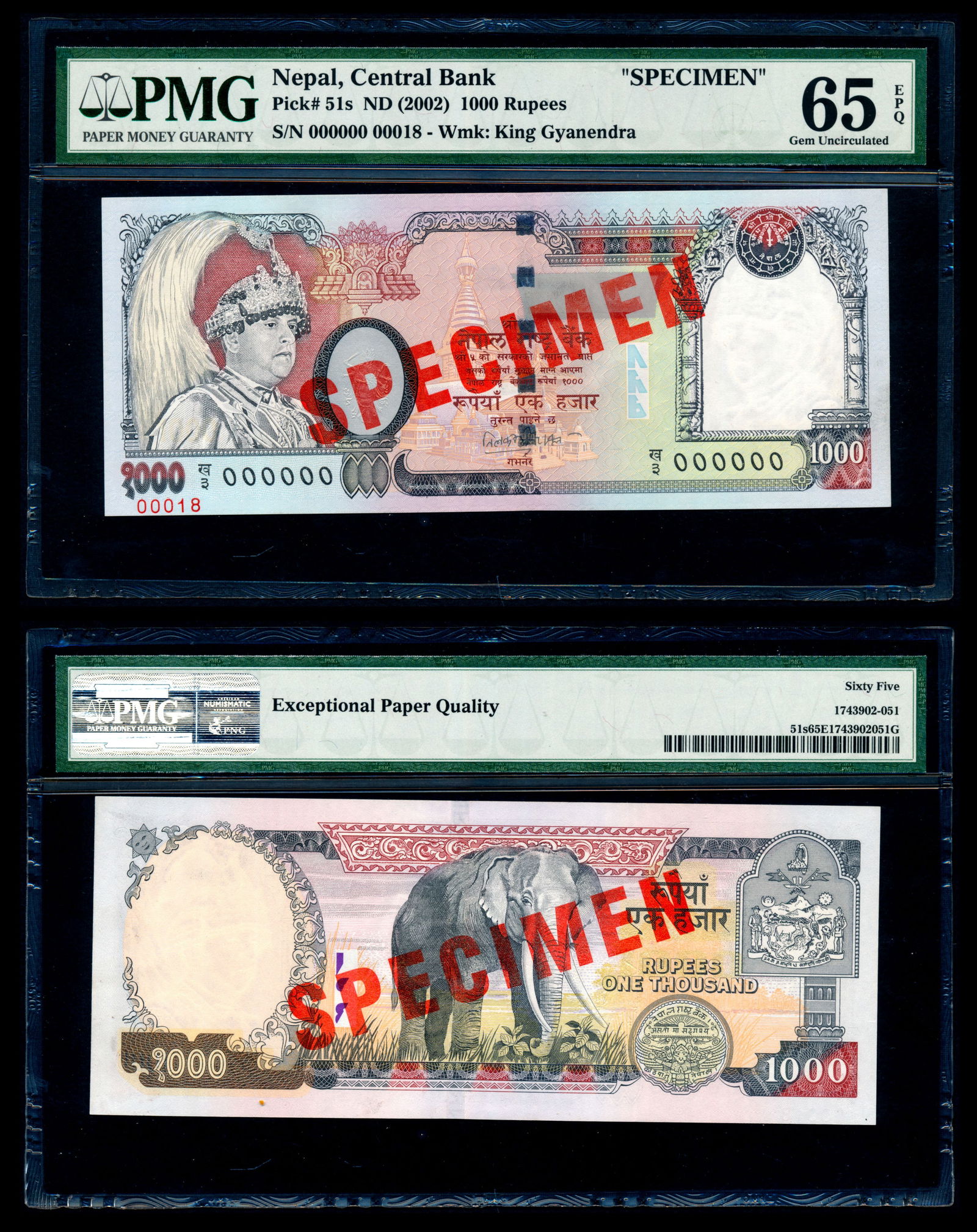 Nepal 1000 Rupees 2002 specimen PMG