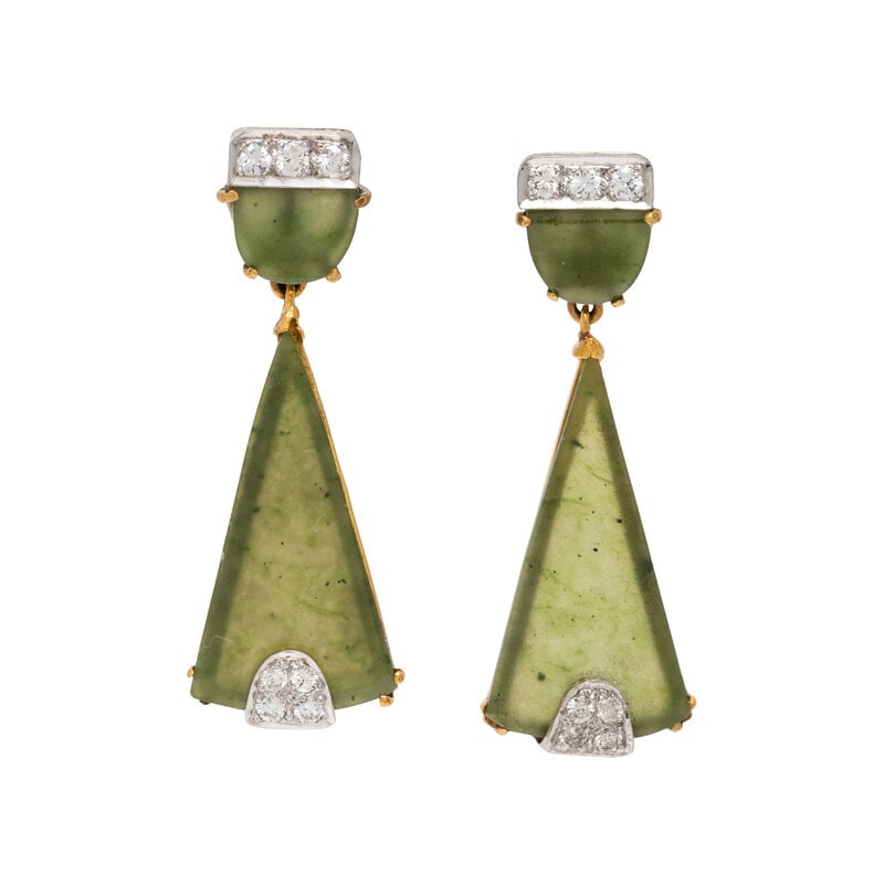 NEPHRITE AND DIAMOND PENDANT EARRINGS