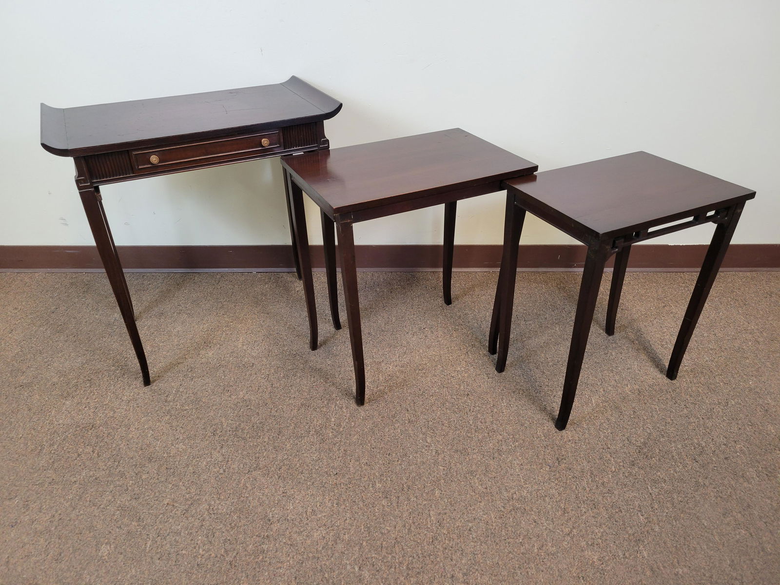 Baker Furniture - Mahogany Faux Bamboo Nesting Tables4 days Left20th Century Regency Style Nesting Tables (3)4 days LeftLouis XVI Style Nesting Tables, Group of 34 days LeftPedestal Table and Low Table with Drawer4 days LeftAdjustable Serving Table6 hrs LeftEnglish Walnut Nest of 3 TablesMar 02, 2026Contemporary Pub Table6 hrs LeftMahogany Drop Leaf Dining TableMar 04, 2026Desk and ChairMar 01, 2026Group of 3 Nesting Tables - Each with Different Veneer Tops - Large is 26.5" x 24" x 14"LATE FEDERAL DROP LEAF TABLE WITH A MAHOGANY GAME TABLEMar 06, 2026Antique Mahogany Drop Leaf Dining TableMar 04, 2026English Oak Nesting TablesROCKINGHAM CO., NORTH CAROLINA / HENRY CO., VIRGINIA WALNUT THREE-PIECE BANQUET TABLEMar 06, 2026Two American One Drawer Side Tables2 days LeftCherry Wood Dining Table Model 2205 Traditional 1990sMar 04, 2026