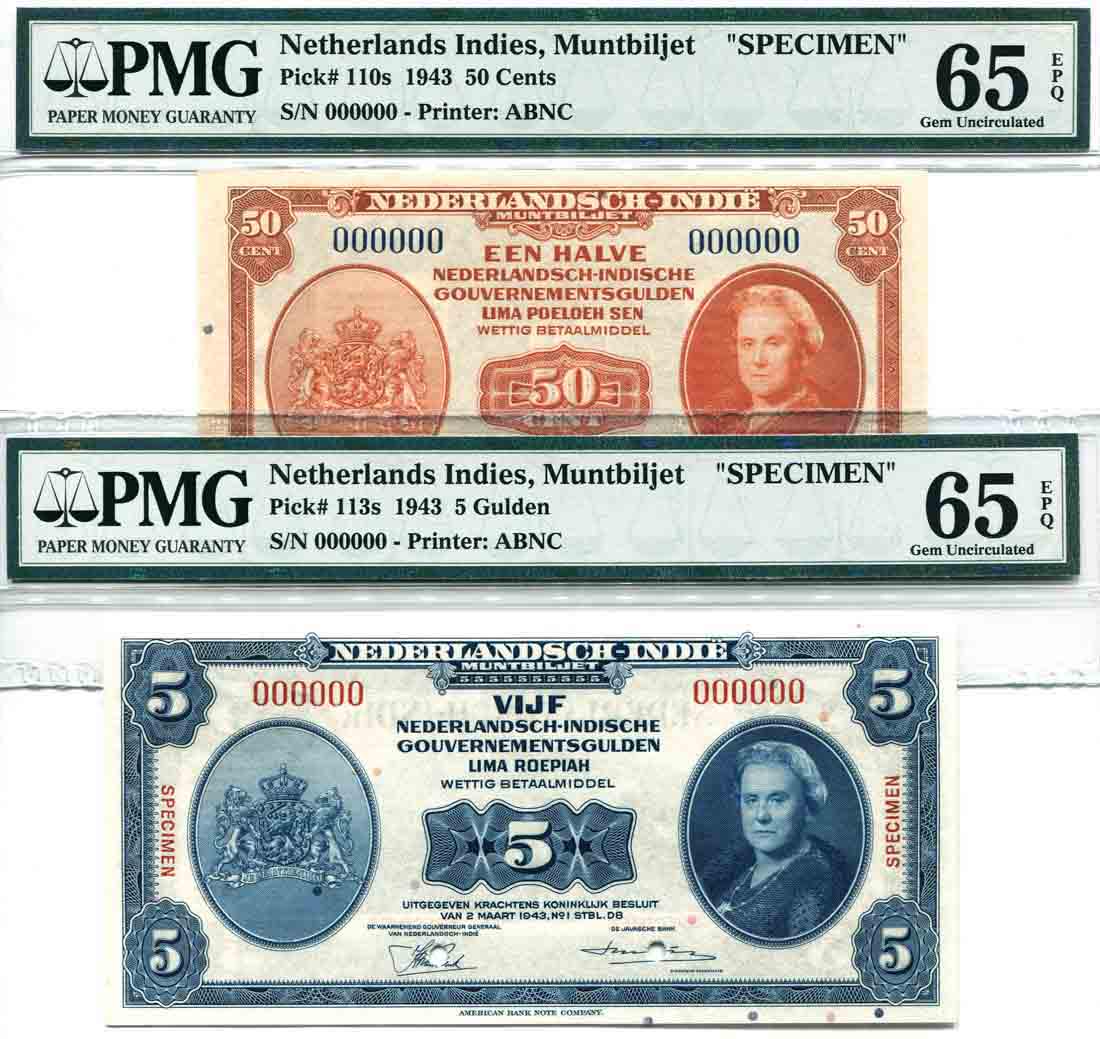 SoldNetherlands East-Indies 1943, 50 Cents (P110a) S/no. FBNetherlands East-Indies 1943, 50 Cents (P110a) S/no. FB 018967, PMG 65EPQSee Sold Price