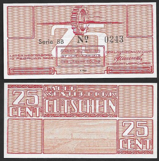 Netherlands Westerbork camp 25 Cent note 1944 Campbell