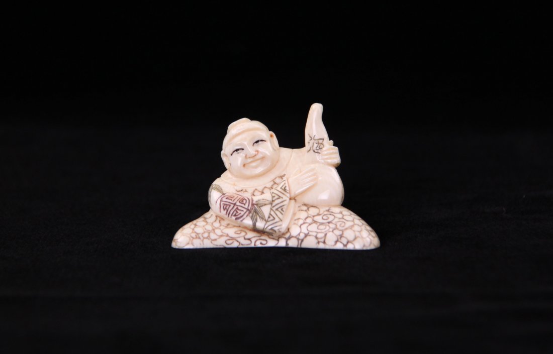 Netsuke authentic with signature, Man sitting with