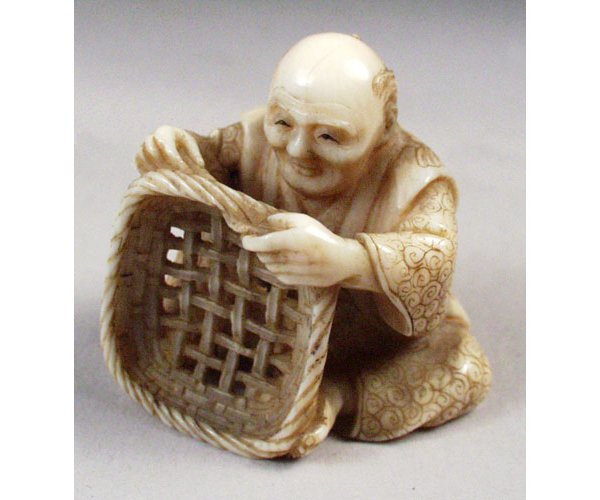 Netsuke, Man Weaving Basket.