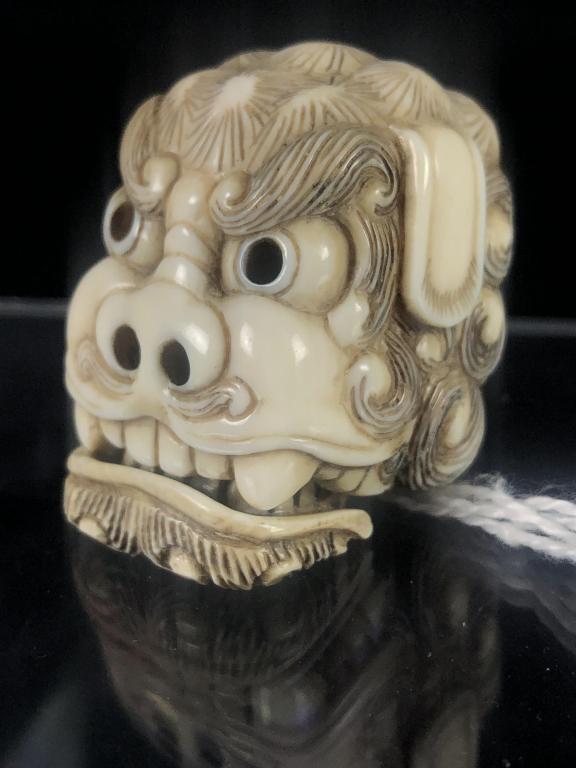 A Qing Dynasty bamboo carved auspicious lion (Taishi and Young Lion) ornament3 days LeftAntique Chinese Carved Bone Foo Dog on Stand6 days LeftA Hirado porcelain netsuke of a shishi3 days LeftA Chinese Jade Dragon Mask Pendant, 20th Century, 98YA2 days LeftA Japanese Carved Wooden Lion Netsuke, signed Gan Yu3 days LeftNetsuke Katabori Monkey, Japan,Mar 13, 2026Japanese Carved Stag Horn Netsuke,Mar 14, 2026A CARVED WHITE JADE LION4 days LeftA HETIAN JADE CARVED LION PLAYING WITH BROCADE BALL FIGURE3 days LeftHirado Porcelain Netsuke of a Shishi (White Lion-Dog), Japan, Meiji Period10 hrs LeftChinese Han Style Old Jade Carved Lion Pendant1 day LeftA Chinese Jade Mythical Beast Carving, 20th Century, 42YA2 days LeftA Chinese Sancai-Glazed Ceramic Guardian Lion, Ming Dynasty or earier10 hrs LeftJapanese Carved Netsuke Figure of HoteiA Chinese Jade Mythical Beast Sculpture, 20th Century, 79YA2 days LeftA Japanese Figural Netsuke, Carved Bone Standing Figure, Signed (Hisakazu / Ky?ichi), Meiji period10 hrs Left