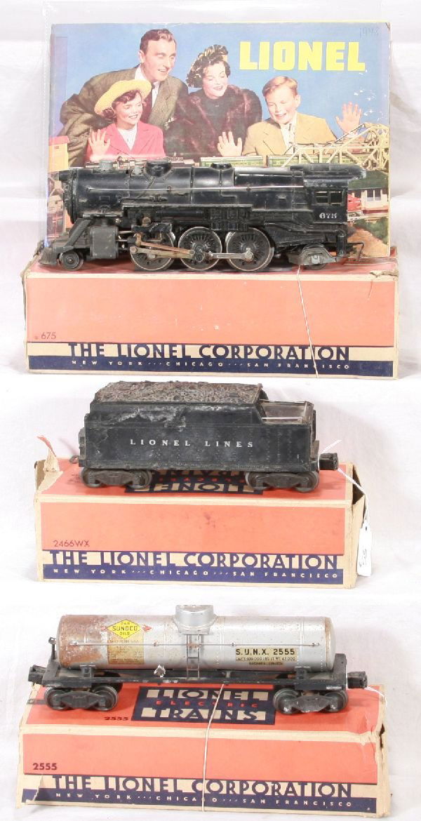 Sold3 PC LIONEL TNAK, BOX, AND FLAT CARS.3 PC LIONEL TNAK, BOX, AND FLAT CARS. LOT INCLUDES 3461 LOG CAR, 6464475 BOX, AND 6465 TANK CAR. Condition All property is sold in "as is" condition and all sales are final. Teel Auctions and its consSee Sold Price