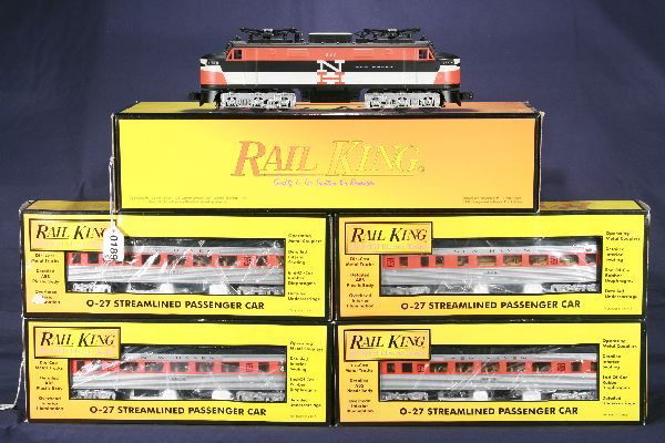 SoldMTH RailKing PRR Passenger SetIncludes a 30-1118-1 PRR Torpedo loco with ProtoSounds; 30-6200 baggage; 6201 & 02 coaches; 30-6203 observation. All appear like new with boxes, 1 flap faded, C9-10See Sold Price