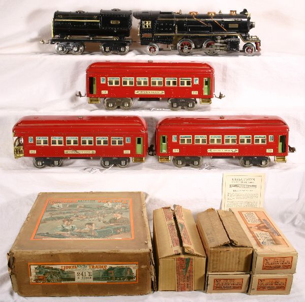 Lionel Prewar O Gauge 253 maroon terra-cotta Electric Locomotive with 610 - 610 - 612 Passenger CarsHarris Toy & Train Auctions4.5(159)$206 days Left