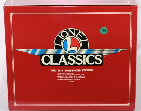 SoldLionel Classics Train Stations and Trolley Cars, Lot ofAmerican. A group of four Lionel Classics trains and buildings, all in original boxes and packaging material, including one No. 1115 passenger station (box ht. 12, wd. 18, dp. 14 in.), one No. 126 LiSee Sold Price