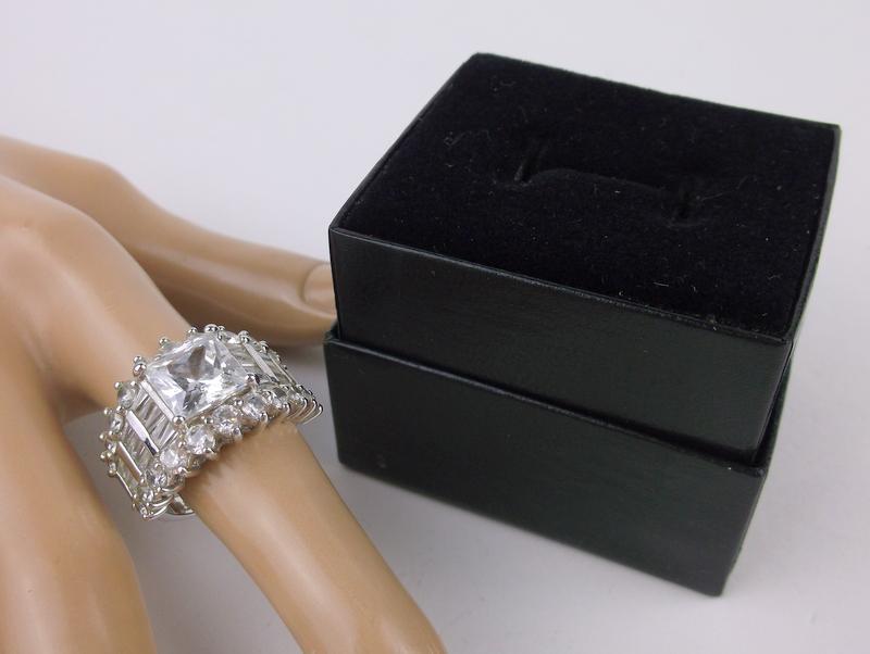 New Boxed Huge Sterling Silver White Stone Ring 9