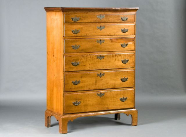 New England Chippendale tiger maple six drawer