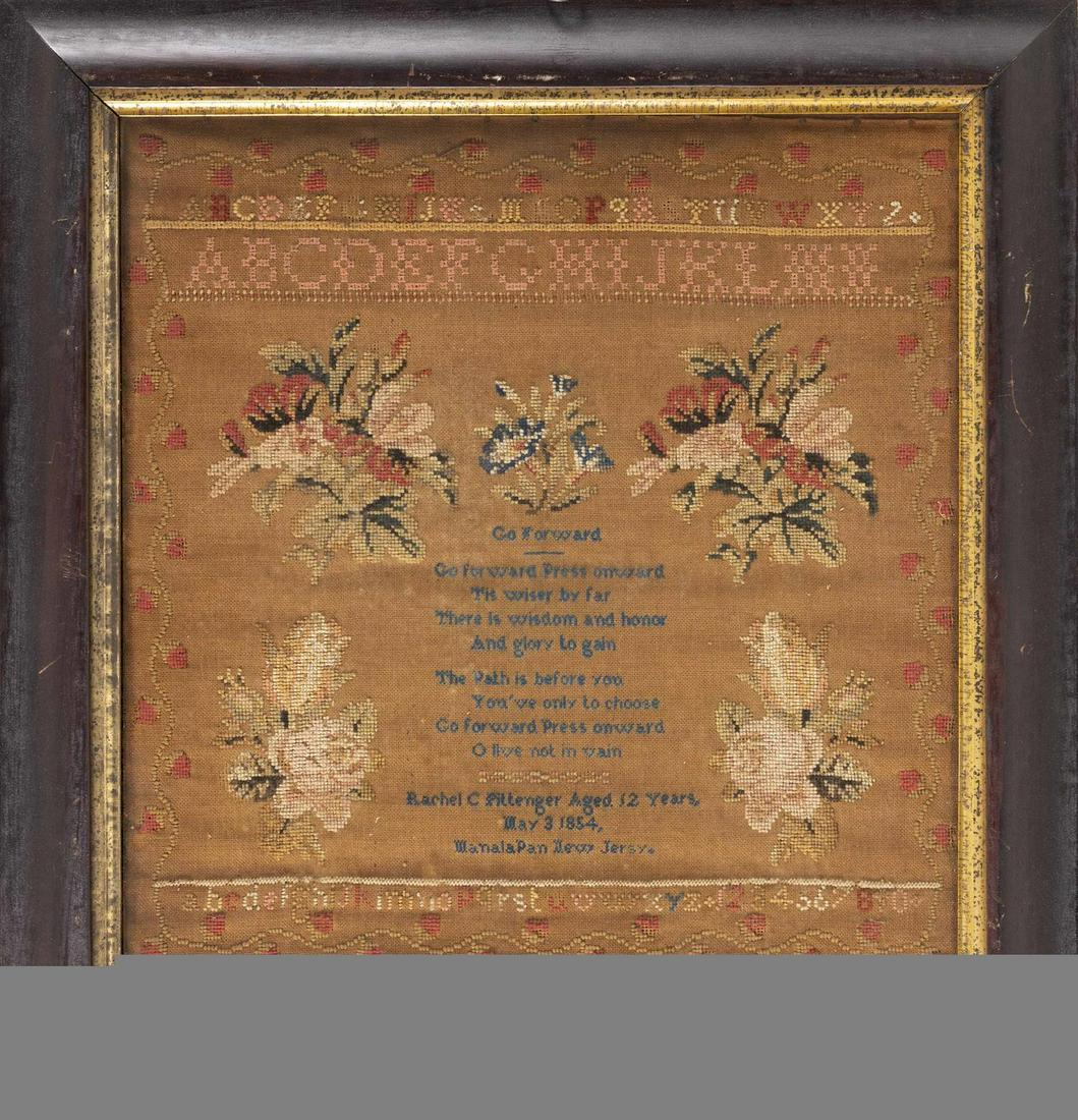 NEW JERSEY NEEDLEWORK SAMPLER Dated 1854 Wrought by