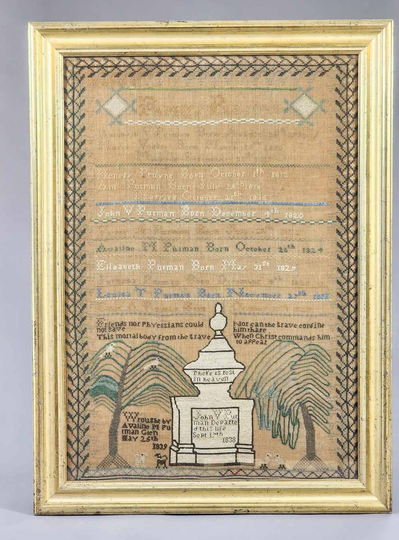 PENNSYLVANIA PRINTED BIRTH AND BAPTISMAL CERTIFICATES / FRAKTUR, LOT OF TWO2 days LeftStatistical Atlas of the United States based on the results of the Ninth Census 1870 withMARGARET SWAIN (MASSACHUSETTS) NEEDLEWORK MOURNING MEMORIAL SAMPLER FOR THOMAS A. SWAIN, DATED 1810.Mar 19, 2026MERIBAH ELLIS (AMERICAN) FAMILY RECORD PETIT POINT SAMPLER. 17.75"h. 13"w.Mar 19, 2026New Hampshire Ford Family Needlework Register,1823Mar 15, 2026MARY WARREN (DELAWARE COUNTY, NEW YORK, B. 1823) NEEDLEWORK SAMPLER, DATED 1831. Frame,16.5"h.Mar 19, 2026SOPHIA PULSIPHER (MASSACHUSETTS, B. 1798) WHITE DOVE SCHOOL NEEDLEWORK SAMPLER, DATED 1811. Frame,Mar 19, 20261847 Schoolgirl Sampler5 days LeftSUSAN WHITNEY (AMERICAN) NEEDLEWORK SAMPLER. Frame, 18.25"h. 14"w.Mar 19, 2026HANNAH SHED (AMERICAN, B. 1824) NEEDLEWORK SAMPLER, DATED 1833. Frame, 19"h. 18"w.Mar 19, 2026SARAH HOMER (AMERICAN) FAMILY REGISTER NEEDLEWORK SAMPLER, DATED 1809.Mar 19, 2026ELIZA ELDERD (AMERICAN) NEEDLEWORK SAMPLER, DATED 1806. 24"h. 13.5"w.Mar 19, 2026WILLIAMSTOWN, VERMONT MEMORIAL NEEDLEWORK SAMPLER FOR DOLLY GALE (AMERICAN, B. 1814). Frame,Mar 19, 2026NEW HAMPSHIRE SAMPLER BY SALLY GREGG DATED 18181 day LeftEnglish Needlework SamplerMar 14, 2026HANNAH DAME LINDSAY (AMERICAN) GENERAL GEORGE WASHINGTON MEMORIAL NEEDLEWORK SAMPLER, DATED 1800.Mar 19, 2026