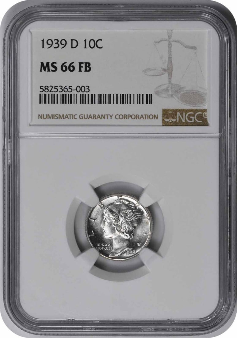 NGC 1939-D Mercury Silver Dime MS66FB