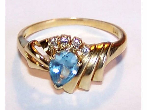 SoldLadies 14k Yellow Gold Blue Topaz & Diamond RingNice ladies 14k yellow gold genuine blue topaz & diamond cocktail ring. The ring is size 6.25 and weighs 2.7 grams.See Sold Price