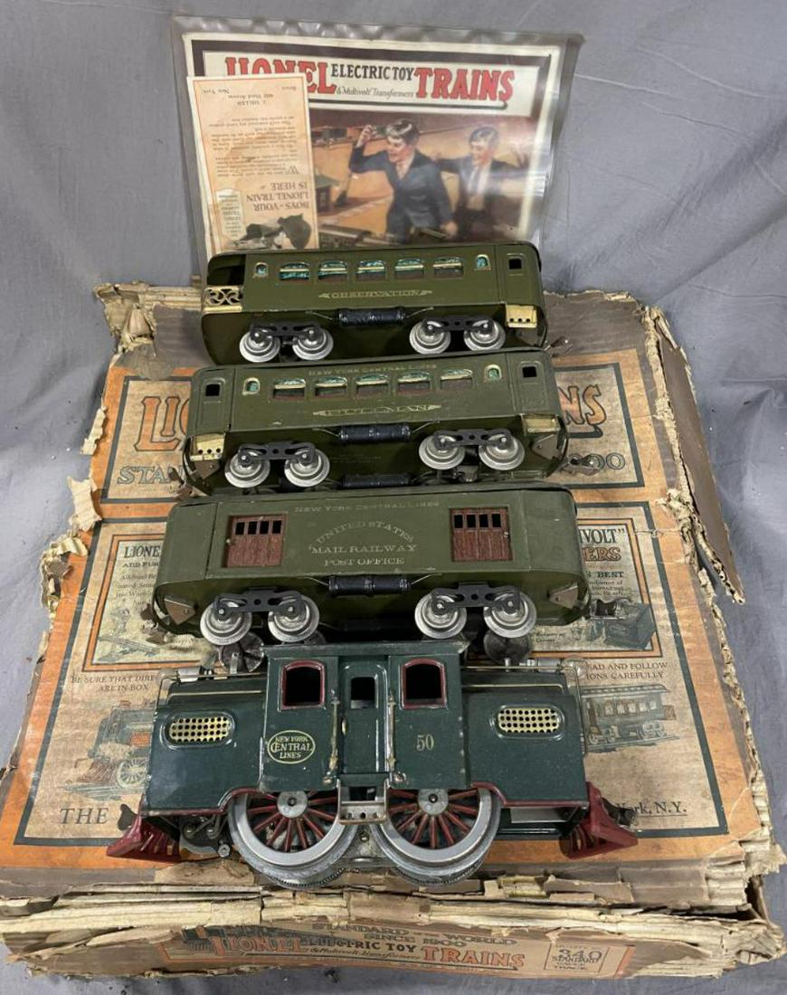 SoldUnusual Boxed Lionel Set 5 G.B. SpecialStandard Gauge. Unrecorded Gimbals set, circa 1925. Includes a 50 electric with Super Motor; 32 baggage; 35 Pullman; 36 observation. All have nice lettering and are fairly clean and shiny. Includes trSee Sold Price